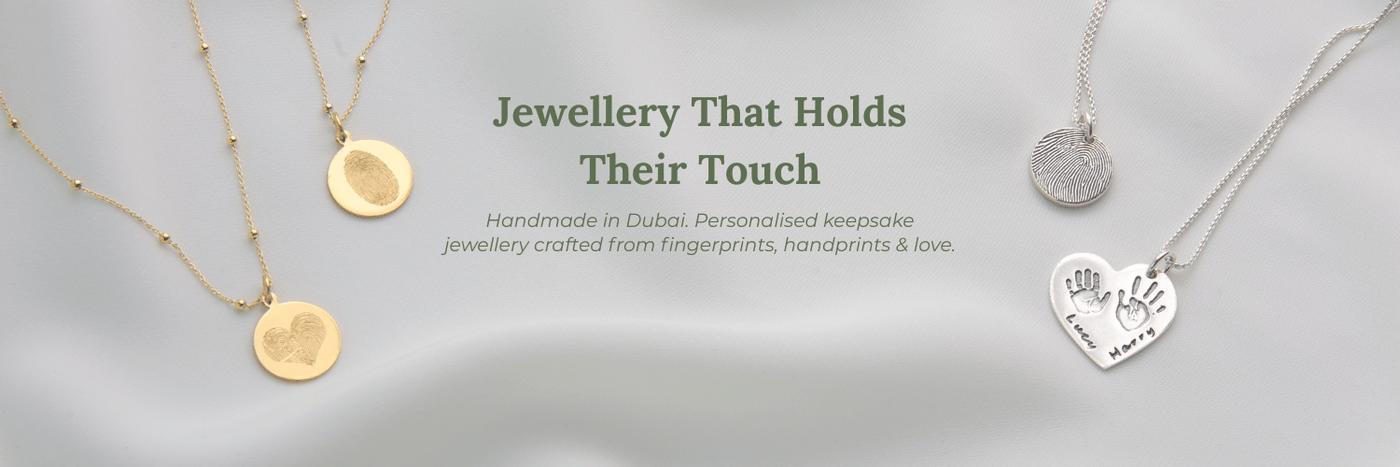 Serving families in Dubai and across the UAE since 2012, we specialise in personalised necklaces, custom fingerprint jewellery, pet prints, memorial and heirloom keepsakes that hold a story.
